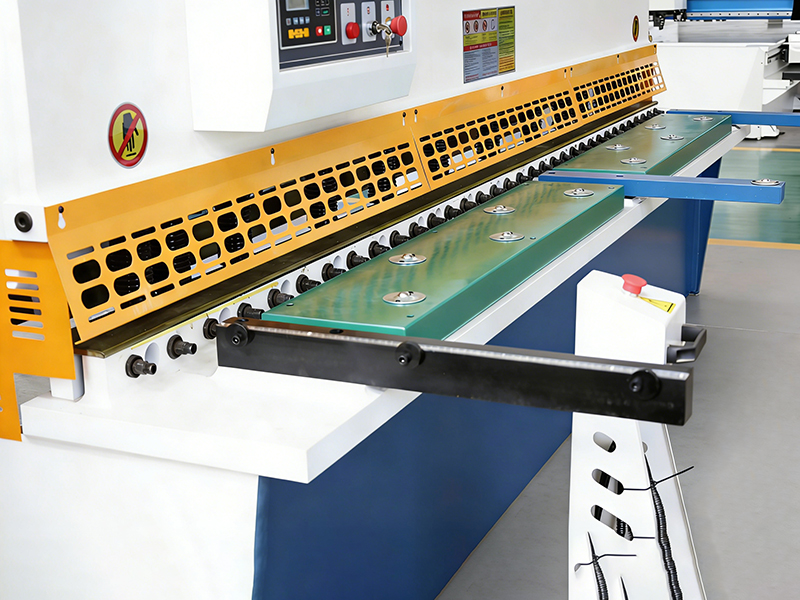 Die Jianmeng QC12K Schwingbalkenschermaschine nimmt innovative Technologie an und verfügt über eine elektrische Vorderwinkeleinstellungsfunktion, um die Genauigkeit jedes Schneidens zu gewährleisten.