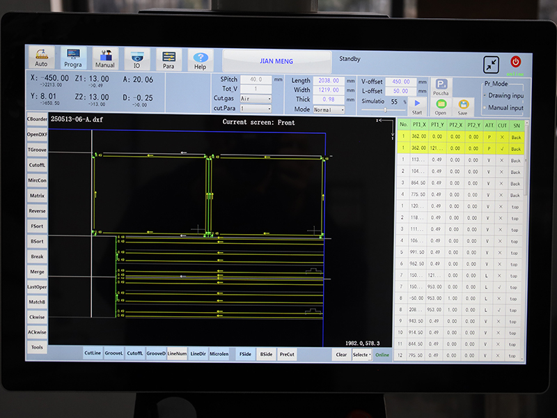 Direkt mit CAD-Zeichnungen verbunden, automatisiert das System die Wegplanung, die Nutparameter und die Lasereinstellungen. Nach der Eingabe von Parametern über eine visuelle Schnittstelle führt es die Vollblattverarbeitung automatisch durch und ermöglicht eine optimierte, einstufige Produktion.